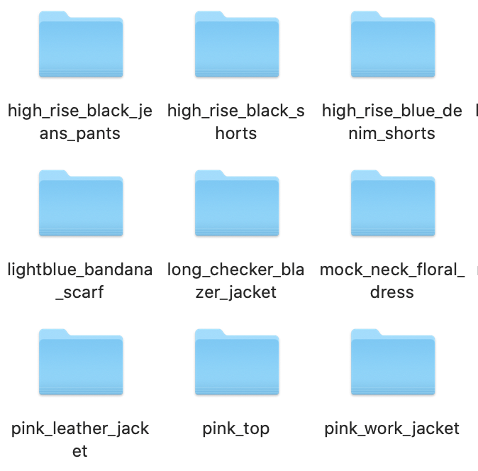 If you, dear reader, want to make your own product set from your own closet pics, I wrote a Python script to help you make a product set from a folder on your desktop. Just: